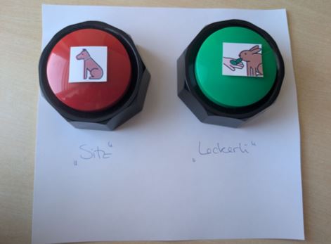 Im klassischen UK-Setting dient die Taste zudem als entscheidendes Interaktionsmedium. Eska übernimmt dabei die Rolle des hochmotivierenden, vierbeinigen Verstärkers. Für Menschen mit schweren motorischen oder sprachlichen Einschränkungen bieten Taster eine niederschwellige Möglichkeit, Kontrolle zu erleben, die im Alltag oft fehlt.